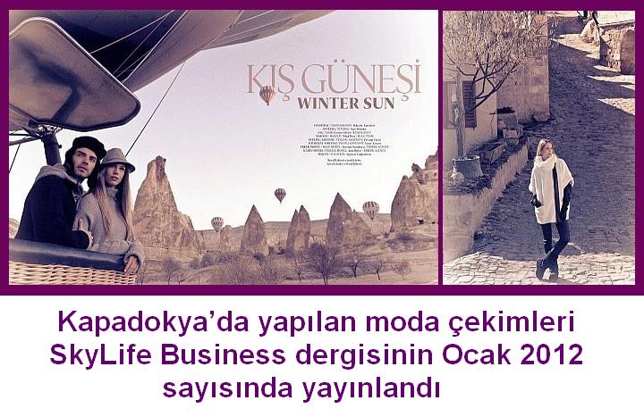 THY’nin iç ve dış hat business class uçuşlarında ve CIP&VIP salonlarında okurlarıyla buluşan SkyLife Business dergisi için geçtiğimiz kasım ayının sonunda Kapadokya’da moda çekimleri yapıldı. Derginin Ocak 2012 sayısında yayımlanan çekimler, Uçhisar’daki Argos in Cappadocia’nın ve Göreme’de hizmet veren Royal Balloon’un katkılarıyla gerçekleştirildi. Ayrıca, SkyLife’ın Ocak 2012 sayısında da “Kapadokya: Düşler Diyarı” başlıklı bir yazıya yer verildi.