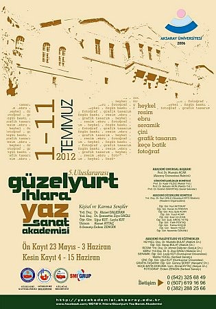 5. Geleneksel Güzelyurt-Ihlara Uluslararası Yaz Sanat Akademisi’ne katılmak isteyenlerin 03 Haziran 2012 tarihine kadar ön kayıt yaptırmaları gerekiyor. Aksaray’ın Güzelyurt ilçesinde 01-11 Temmuz 2011 tarihleri arasında yapılacak Akademi’de, ebru, fotoÄŸraf, grafik tasarım, heykel, seramik, çini, resim ve keçe-batik-dokuma dallarında atölyeler açılacak.