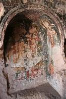 Birinci şapelin freskleri ince bir is tabakasıyla örtülü olmasına rağmen seçilebilmektedir. Her iki şapelin de freskleri tahrip edilmiştir.